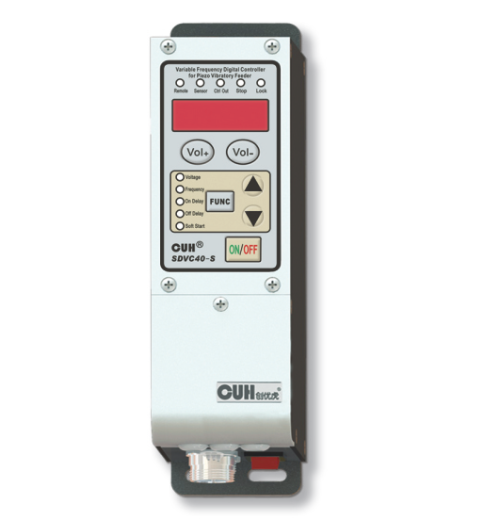 Controller SDVC40 ermöglicht die digitale Regelung der Frequenz und der Spannung des Vibrationsförderers. An die Steuerung können ein externer Schalter, Sensor, Drehzahlregelung, Alarmausgang, Magnetventile und vieles mehr angeschlossen werden.