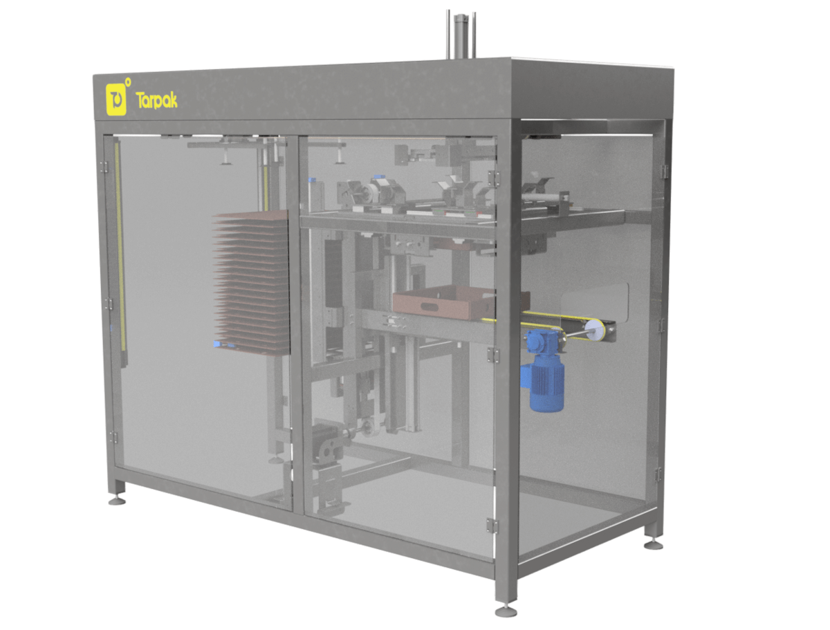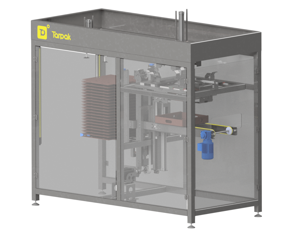 - Wydajność: Urządzenie pozwala na składanie 8-10 tac na minutę, co znacząco przyspiesza procesy produkcyjne. Jest to szczególnie istotne w zakładach, które przetwarzają duże ilości produktów i muszą sprostać wysokim wymaganiom wydajnościowym.