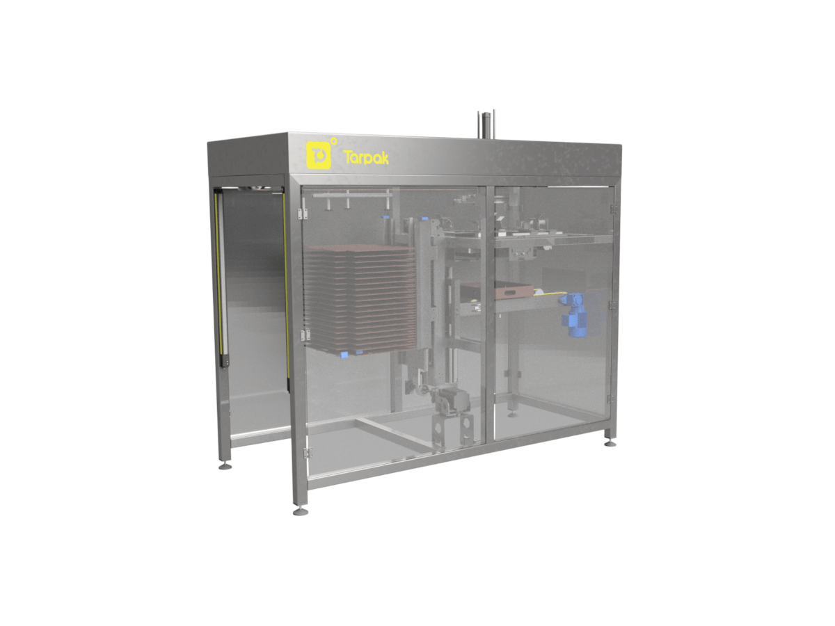 - Transporter magazynowy: Rozwiązanie to ułatwia integrację urządzenia z istniejącymi liniami produkcyjnymi i automatyzację transportu gotowych tac, co dodatkowo zwiększa efektywność procesów logistycznych.