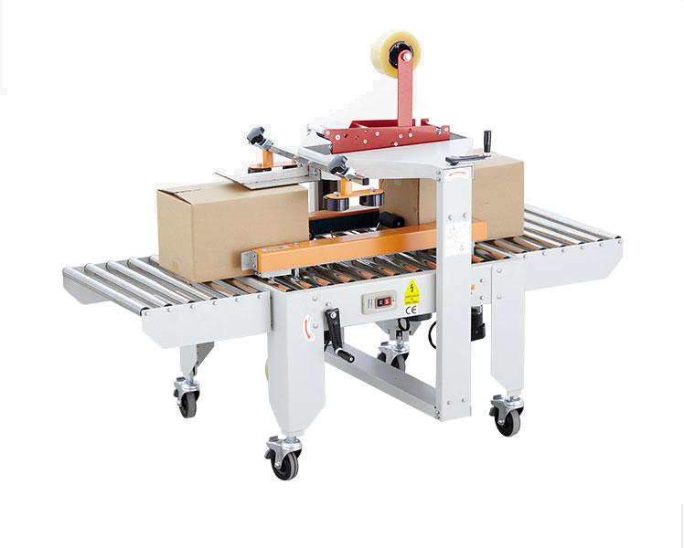 Półautomatyczna zaklejarka kartonów z napędem dwoma pasami bocznymi. Służy do zaklejenia góry i dołu kartonu taśmą samoprzylepną.